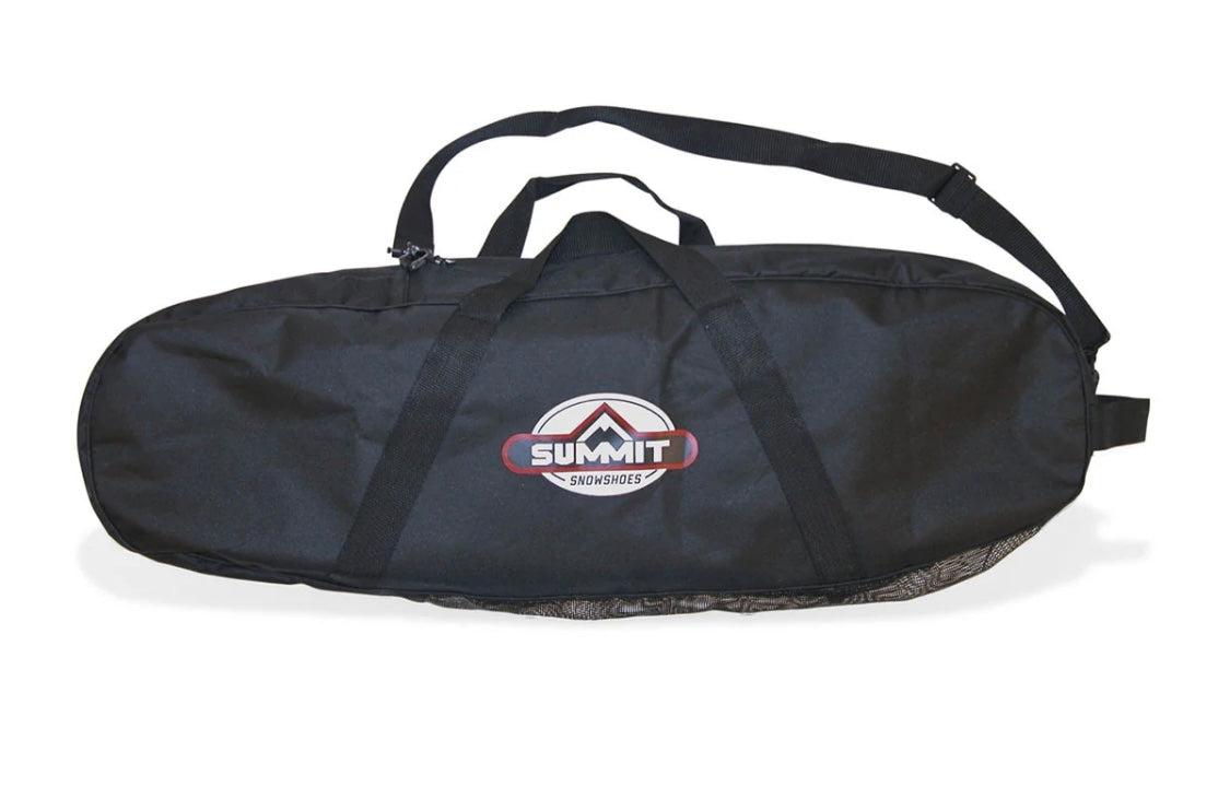 This model includes a well-designed storage bag constructed with heavy Cordura nylon which is reinforced in the binding area. The bag is vented so your snowshoes will dry out quickly. We use heavy nylon webbing for carrying straps along with the adjustable shoulder strap. The 2-way zipper makes it easy to stow away your snowshoes after each use.