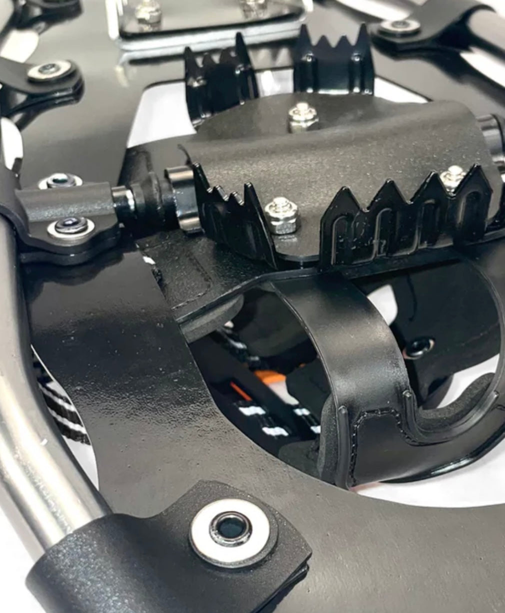 All Summit snowshoes are carefully assembled with aluminum and stainless-steel hardware which is much stronger and will never degrade or corrode from extended use. Most of the components are attached with nuts and bolts so they are easier to replace without special tools. We actually stock replacement parts for every model – call us for service.