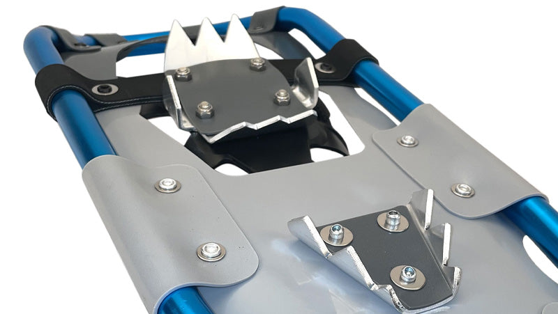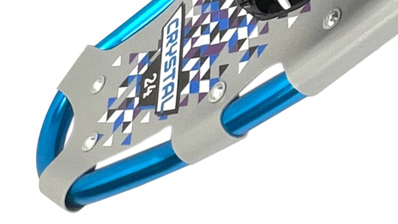 The Crystal model is built with Ultra-Lite Polyethylene deck material which has been trimmed down to reduce weight. The decks are contour wrapped directly around the tubular frame to reduce the weight of the snowshoe. The front of the snowshoe is covered with a high-grade PE deck material strong enough to break your own trails through the woods.
